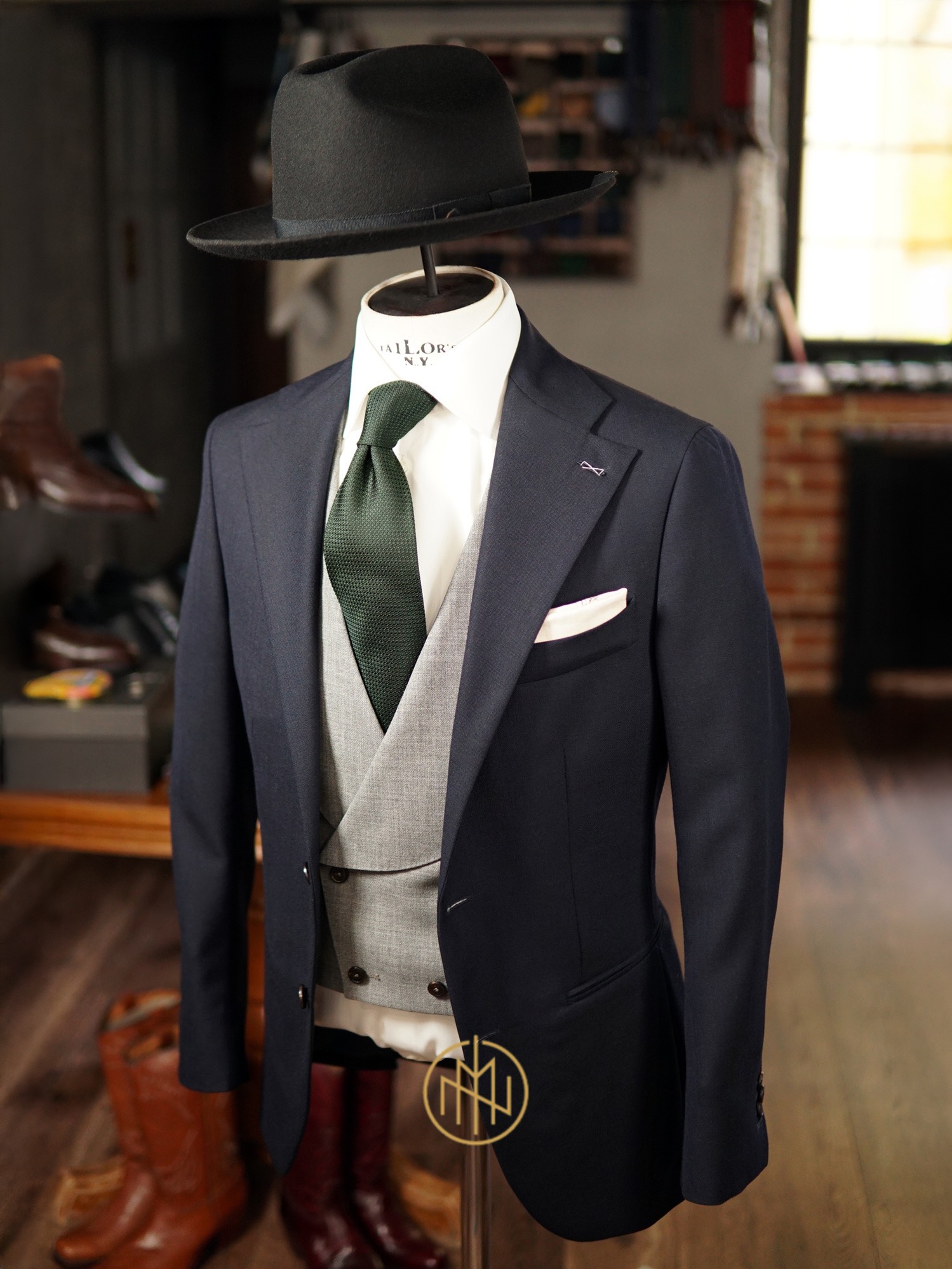 Tkanina marynarki i kamizelki? Tropikalna wełna od @alfred brown - otwarty splot i klasyczna gramatura pozwalają nam przeżyć prawie każdy upał. Zastosowany splot nadaje jej matowy, wręcz „suchy” i szorstki chwyt, dodatkowo zwiększając odporność na zagniecenia. W wersji granatowej i szarej to po prostu świetny wybór na letnie, formalne okazje. Dodatkowym atutem jest to, jak zmienia kolor w zależności od światła (staraliśmy się to ująć na zdjęciach). W mocnym świetle wybrzmiewa ciemnym granatem, momentami wpadającym nawet w delikatny fiolet, zaś wieczorem i w cieniu staje się prawie czarna.