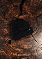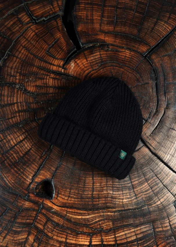 - Czapka wykonana ze 100% czarnej wełny merino, miękkiej, sprężystej i trwałej.
