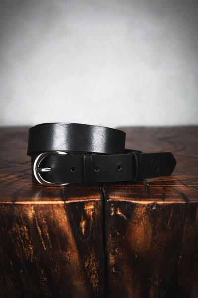 Wąski pasek skórzany do chino i jeansów - czarny [Stuart]