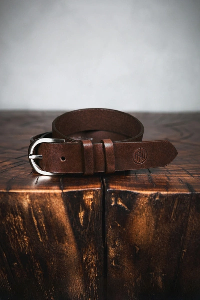 Wąski pasek skórzany do chino i jeansów - ciemny brąz [Stuart]