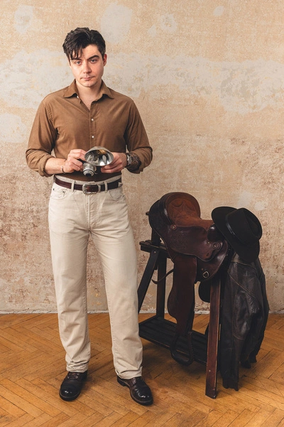 Dakota - karmelowa koszula sztruksowa z kołnierzem półwłoskim
